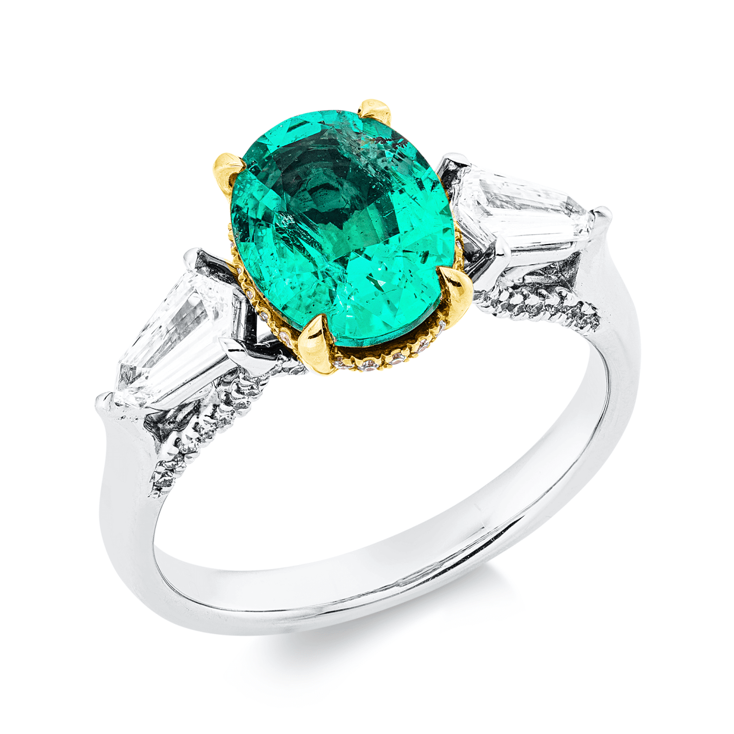 Ring aus 750 Gold gelb/weiß Smaragd 1,7ct grün 74 Diamanten 0,65ct B:9,8mm