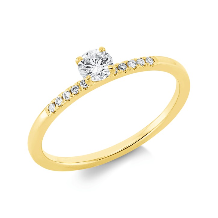 Ring aus 750 Gold Gelbgold 11 Diamanten 0,28ct TW-SI B:3,9mm 4er-Krappe