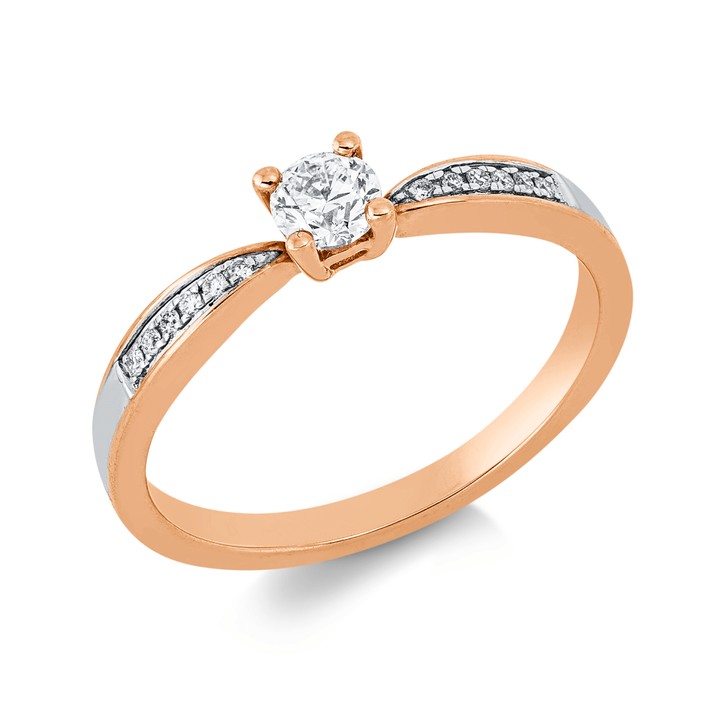 Ring aus 750 Gold weiß/rot 13 Diamanten 0,27ct TW-SI B:3,7mm 4er-Krappe