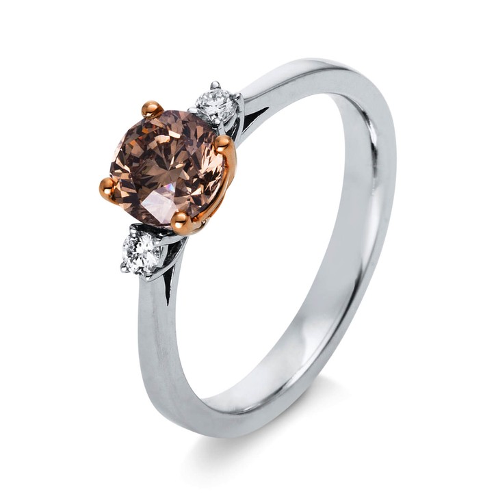 Ring aus 750 Gold weiß/rot 2 Brillanten 0,09ct TW-SI 1 Brillant 1ct braun B:6mm
