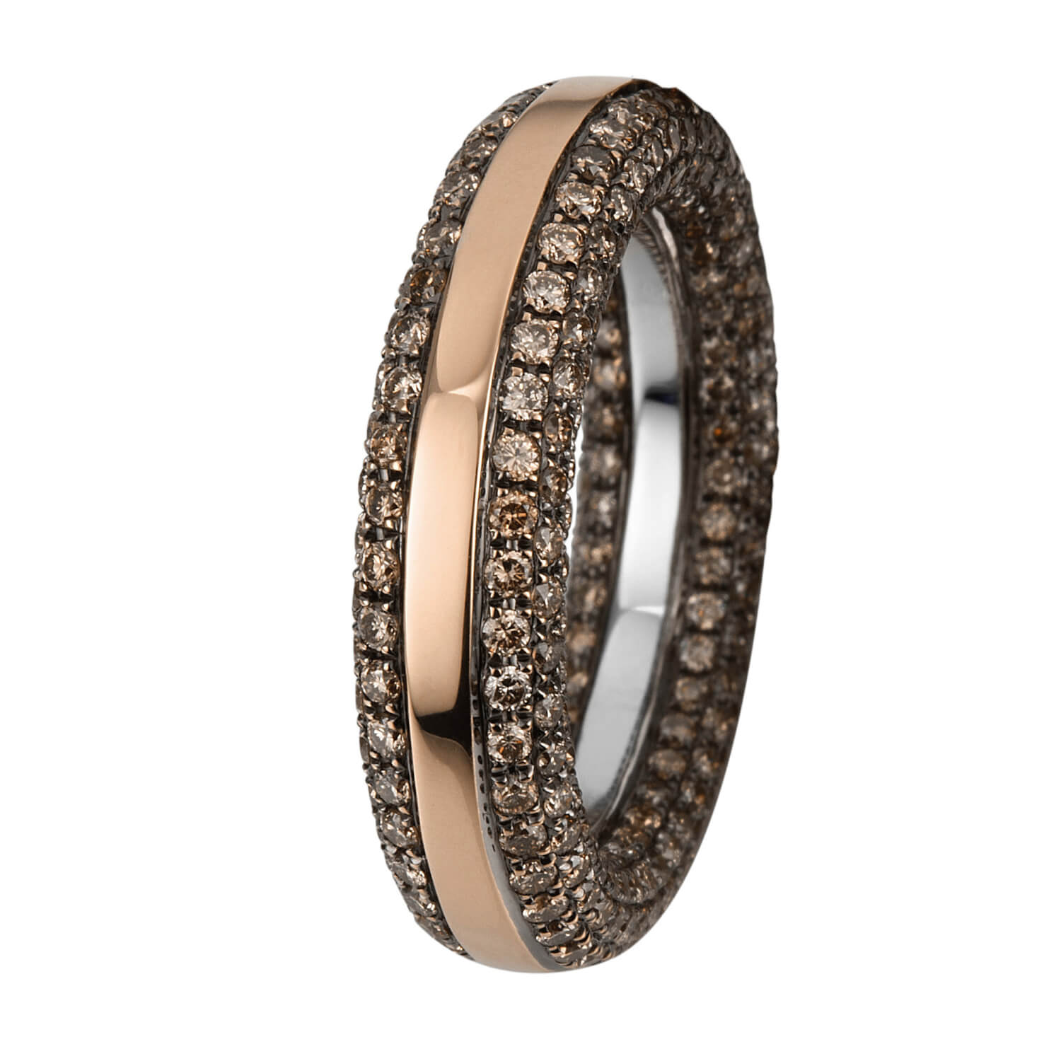Ring aus 750 Gold weiß/rot 368 Brillanten 2,52ct braun B:6,1mm poliert