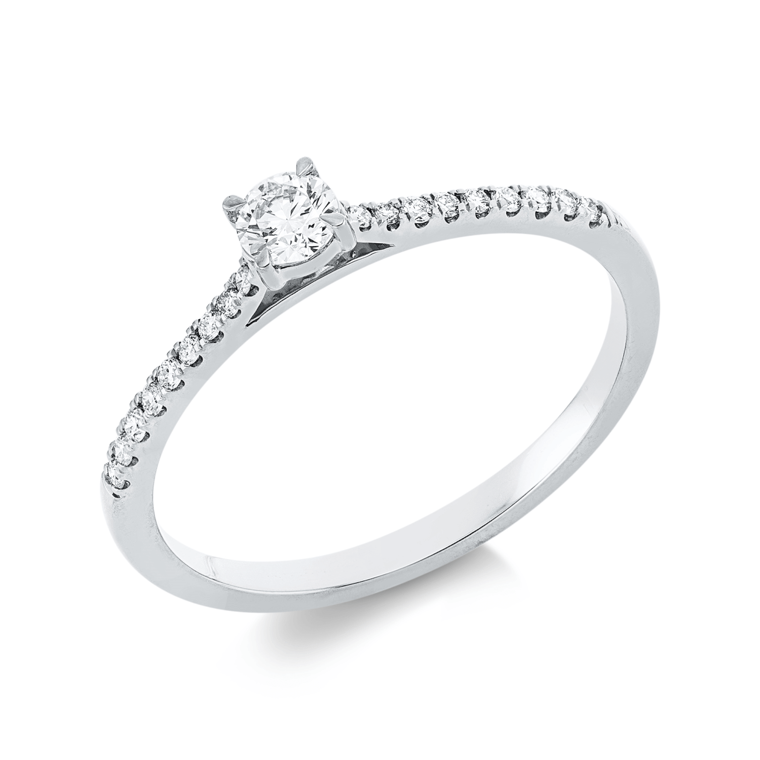 Ring aus 750 Gold Weißgold 19 Diamanten 0,24ct TW-SI B:3,3mm 4er-Krappe