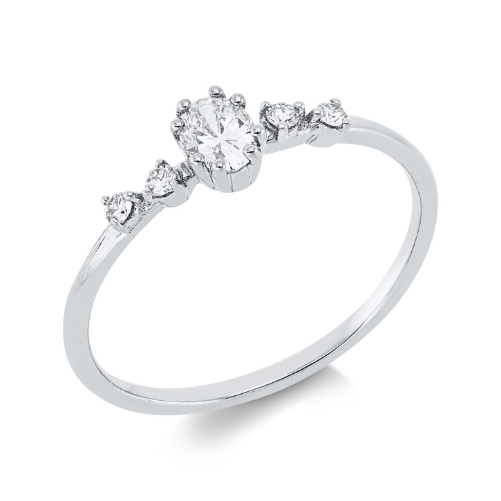 Ring aus 750 Gold Weißgold 5 Diamanten 0,26ct TW-SI B:4,5mm