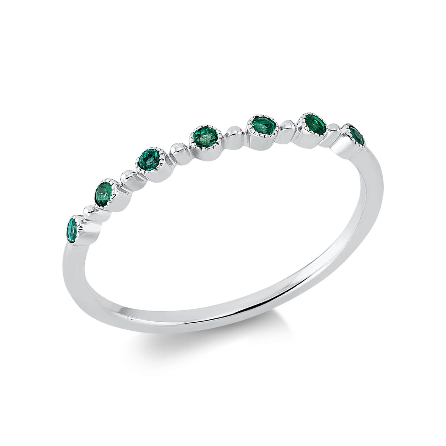 Ring aus 750 Gold Weißgold 7 Smaragde 0,1ct grün B:1,9mm