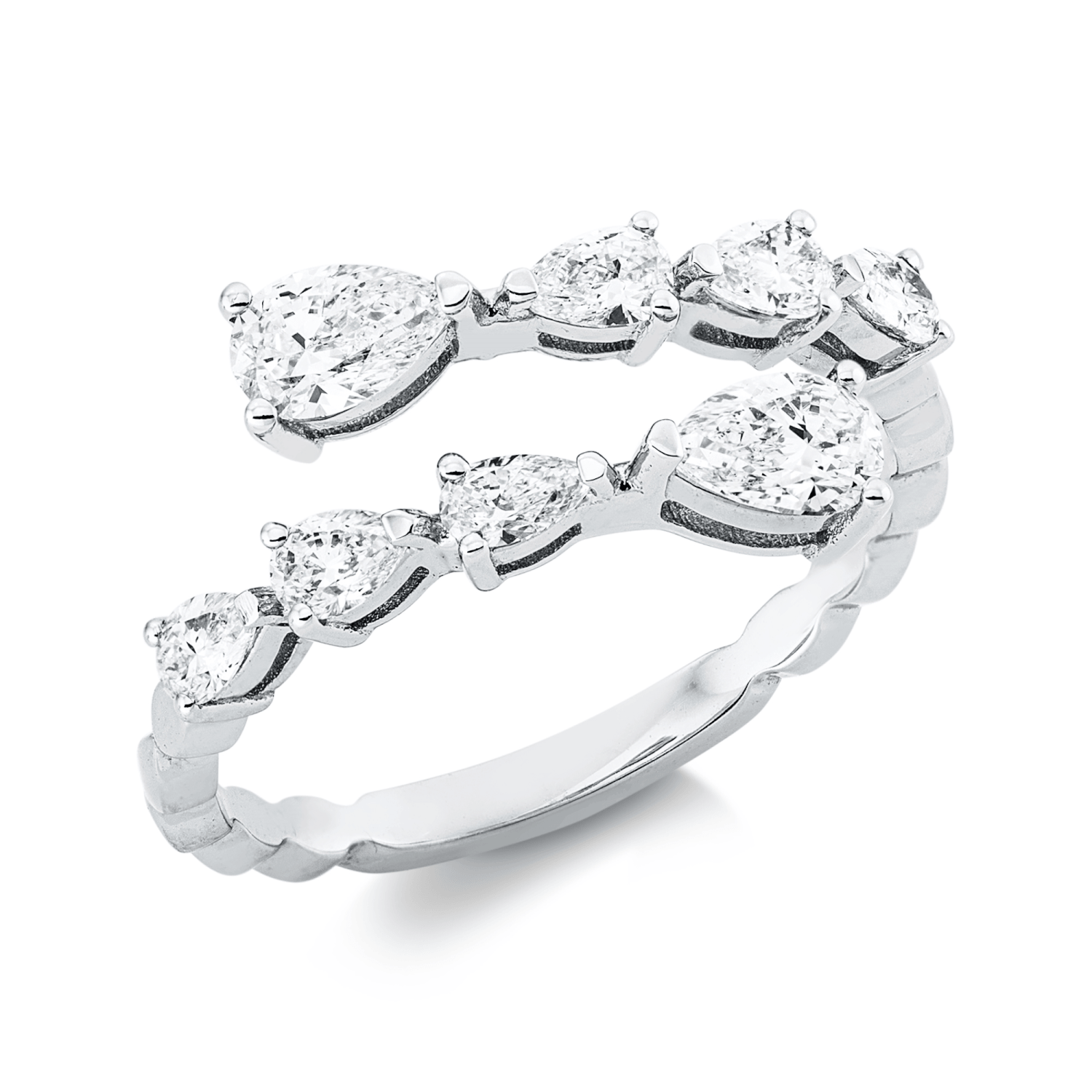 Ring aus 750 Gold Weißgold 8 Diamanten 0,95ct F-SI B:7,7mm