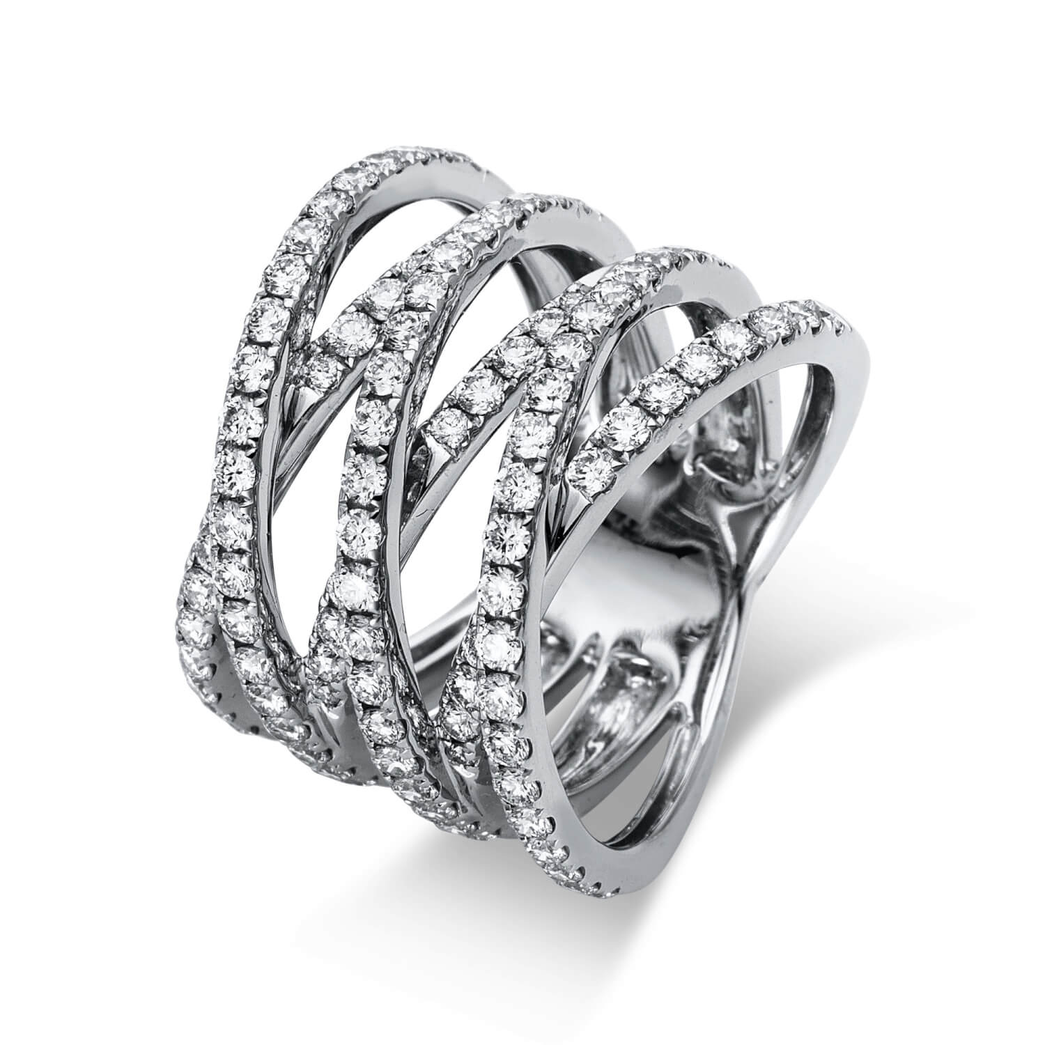 Ring aus 750 Gold Weißgold 99 Brillanten 1,67ct TW-VSI B:17,2mm
