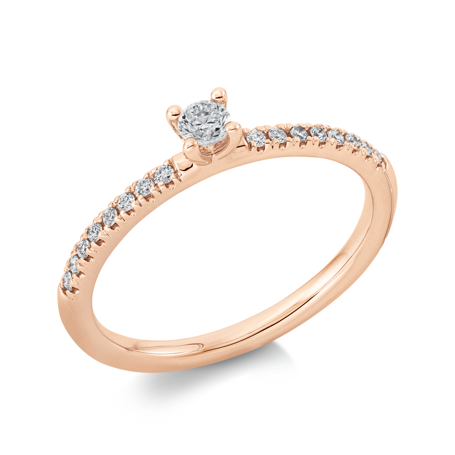 Ring aus 750 Rotgold 16 Brillanten 0,1ct TW-SI 1 Brillant 0,1ct TW-SI B:3,4mm