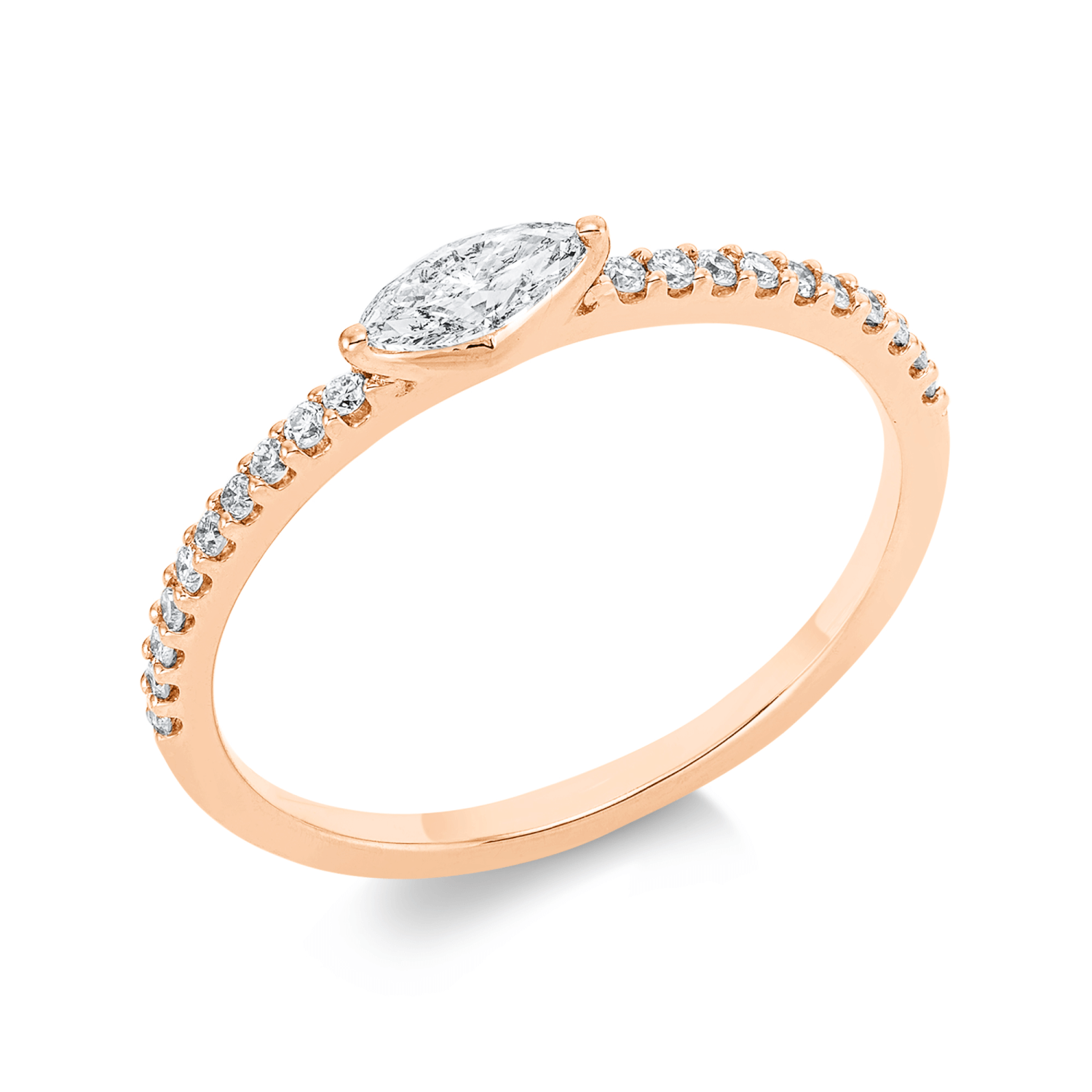 Ring aus 750 Rotgold 21 Diamanten 0,34ct TW-SI B:2,7mm Fassung rhodiniert
