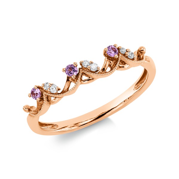 Ring aus 750 Rotgold 3 Saphire 0,08ct pink 6 Brillanten 0,03ct TWW-pi B:3,7mm