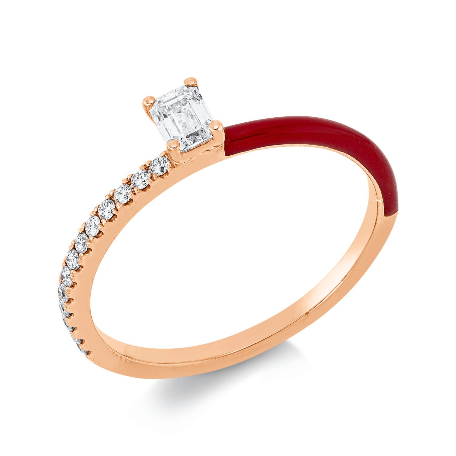 Ring aus 750 Rotgold Emaille 0,05ct rot 14 Diamanten 0,32ct TW-SI B:4,3mm