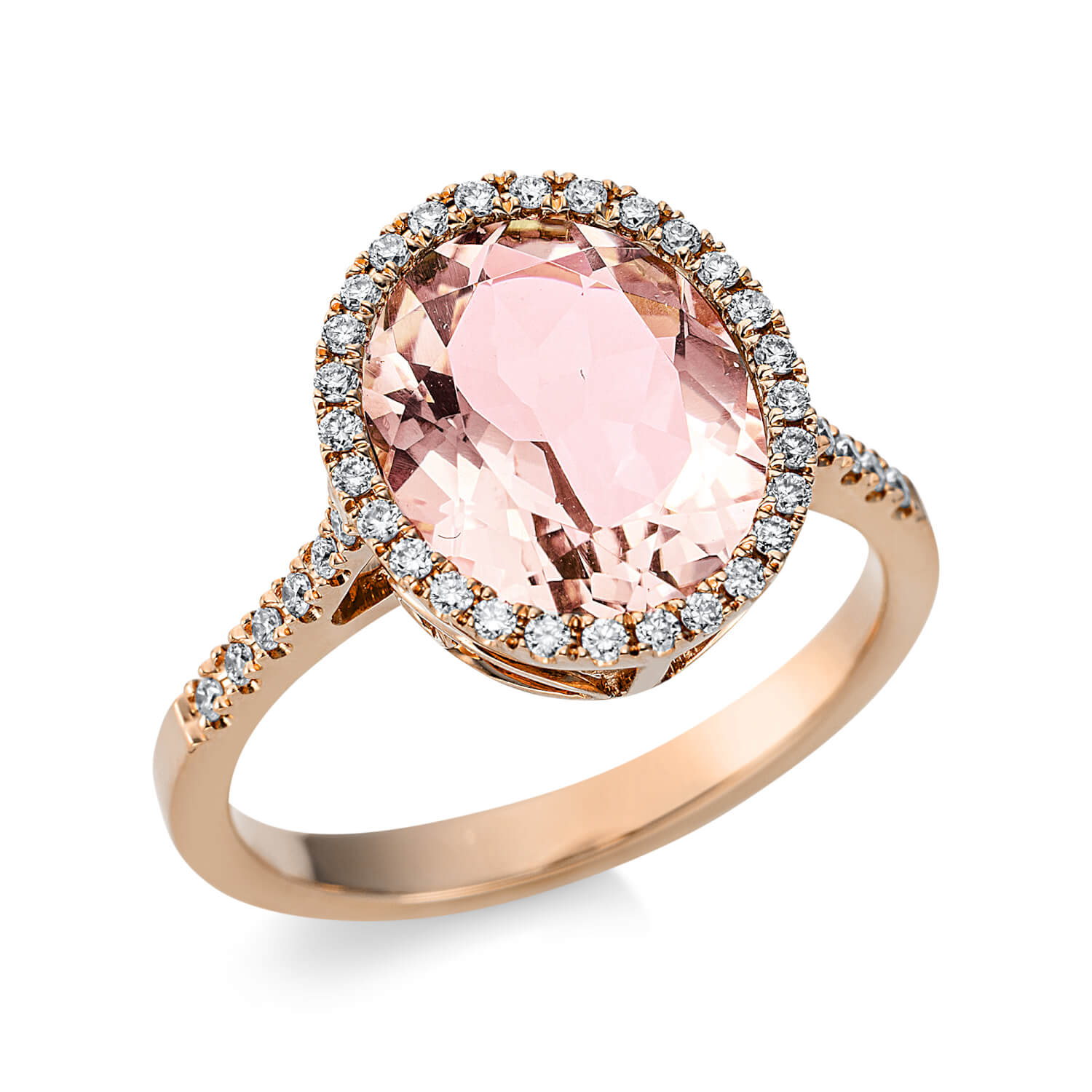 Ring aus 750 Rotgold Morganit 40 Brillanten 0,23ct