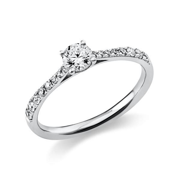 Ring aus 750 Weißgold 16 Brillanten 0,2ct TW-SI 1 Brillant 0,3ct TW-SI B:2mm