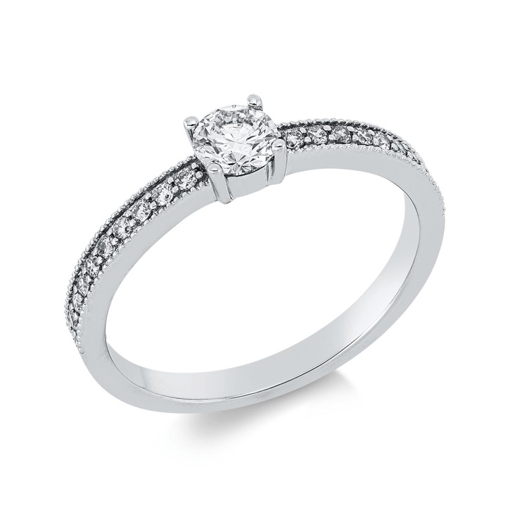 Ring aus 750 Weißgold 18 Brillanten 0,15ct W-SI 1 Brillant 0,3ct W-SI B:4mm