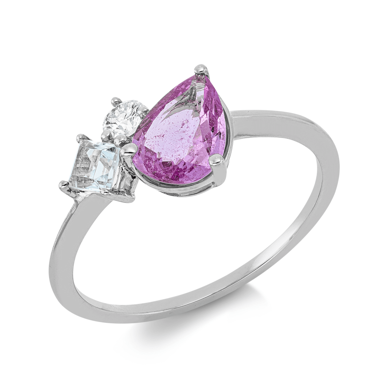 Ring aus 750 Weißgold 2 Aquamarine 1 Brillant 0,1ct