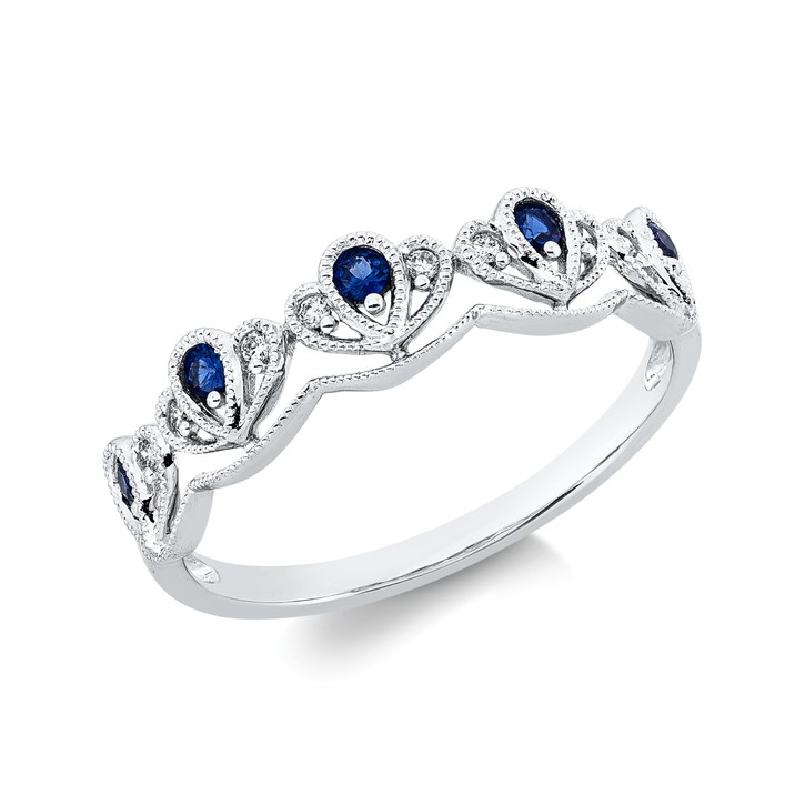 Ring aus 750 Weißgold 5 Saphire 0,15ct blau 8 Brillanten 0,05ct TW-SI B:4,8mm