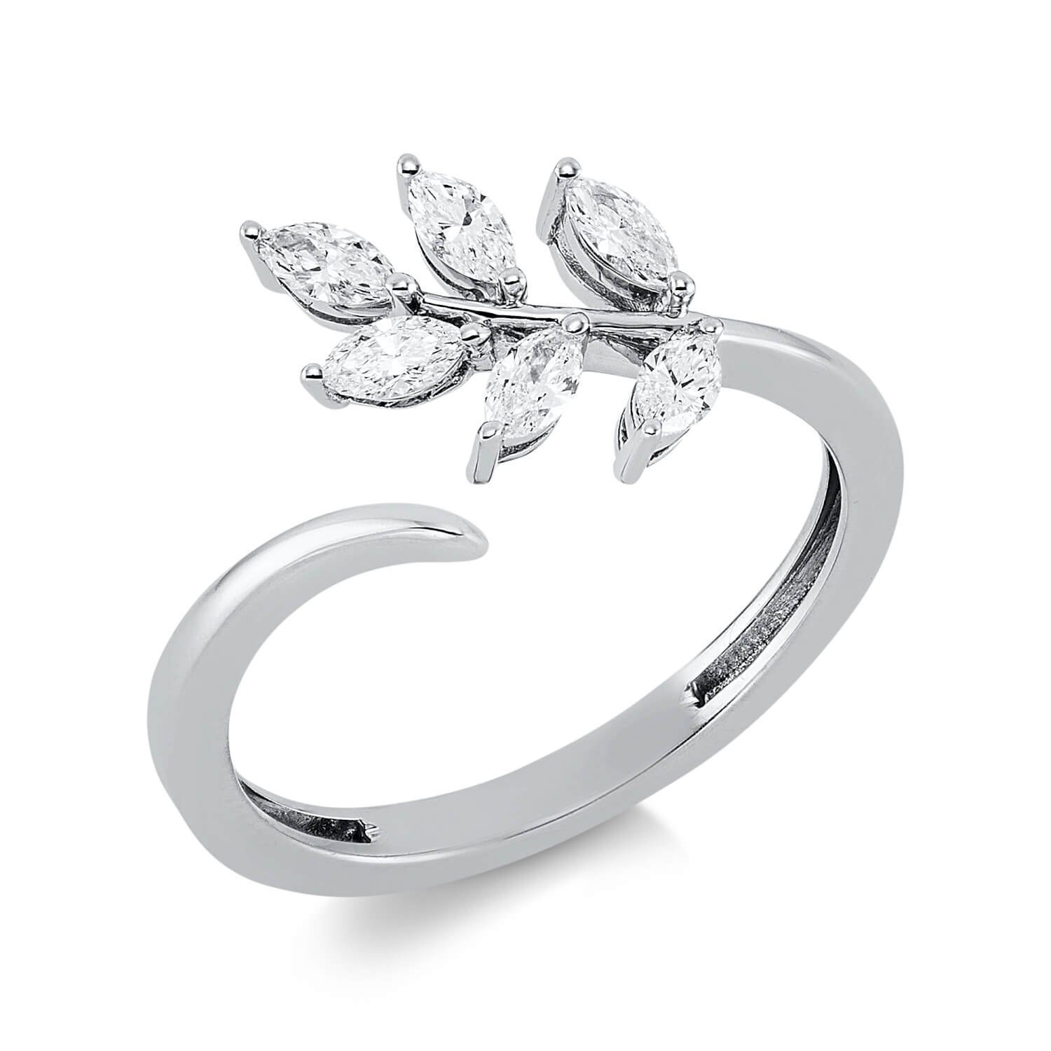 Ring aus 750 Weißgold 6 Diamanten Navette-Schliff 0,34ct TW-VSI B:11mm