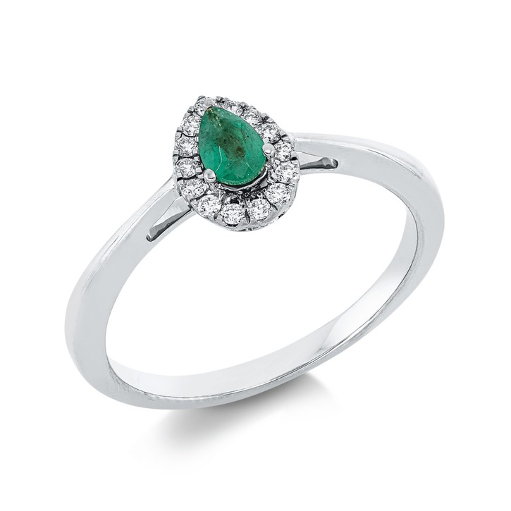 Ring aus 750 Weißgold Smaragd 0,2ct grün 14 Brillanten 0,09ct TW-SI B:8,2mm