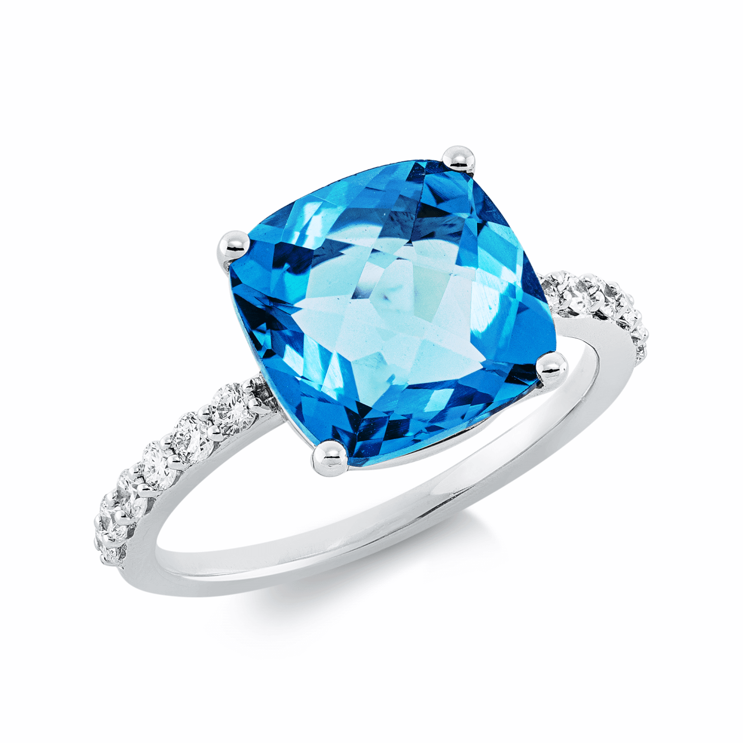Ring aus 750 Weißgold Topas 4,64ct blau 12 Brillanten 0,26ct TW-SI H:10mm