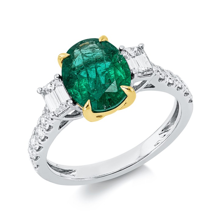Ring aus 950 Gold gelb Smaragd 2ct grün 14 Diamanten 0,86ct B:9,7mm