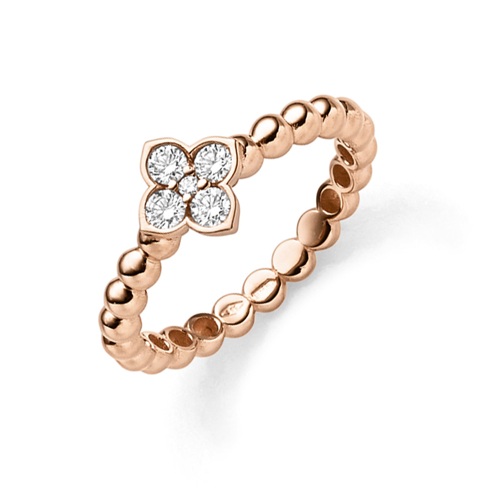 Kugelring Blume 585 Rotgold mit 5 Diamanten 0,24ct. TW-SI