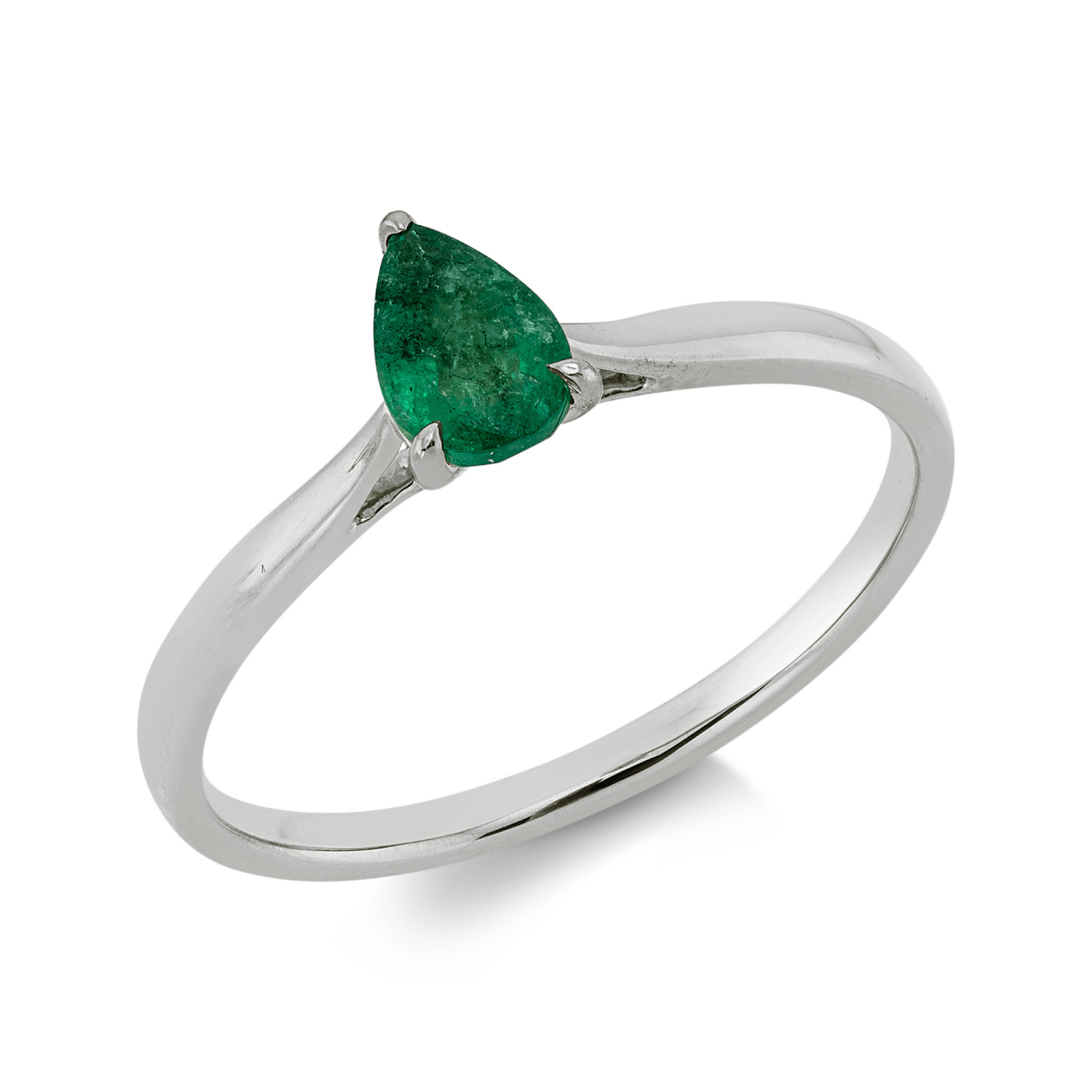 Ring Tropfen aus 750 Gold Weißgold Smaragd 0,36ct grün B:6,5mm 3er-Krappe
