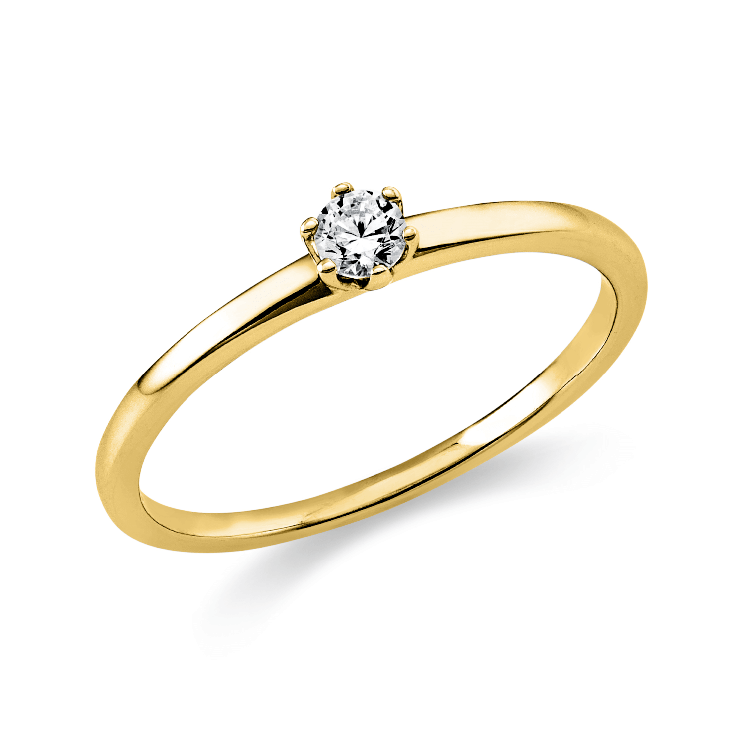 Solitaire Ring aus 750 Gold Gelbgold Brillant 0,1ct TW-SI B:1,4mm 6er-Krappe