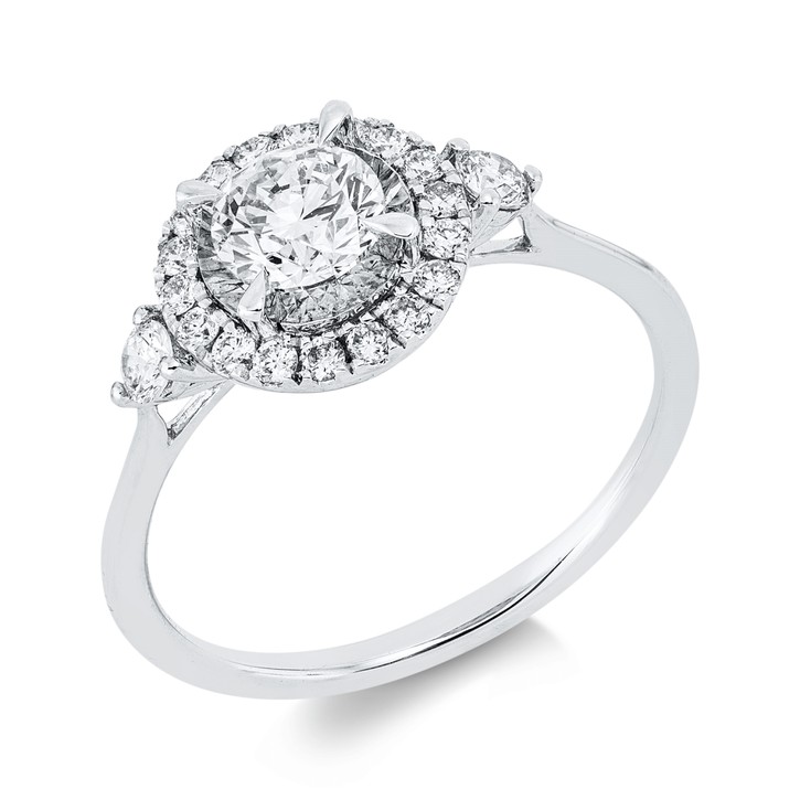 Solitaire Ring aus 750 Weißgold 21 Brillanten 0,86ct