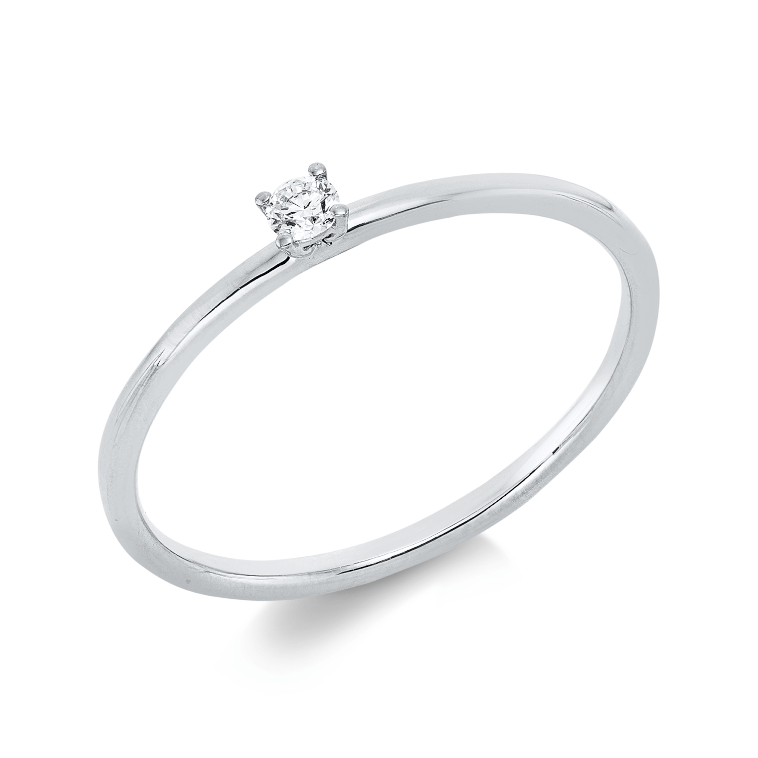 Solitaire Ring aus 750 Gold Weißgold Brillant 0,05ct TW-SI B:2,2mm 4er-Krappe