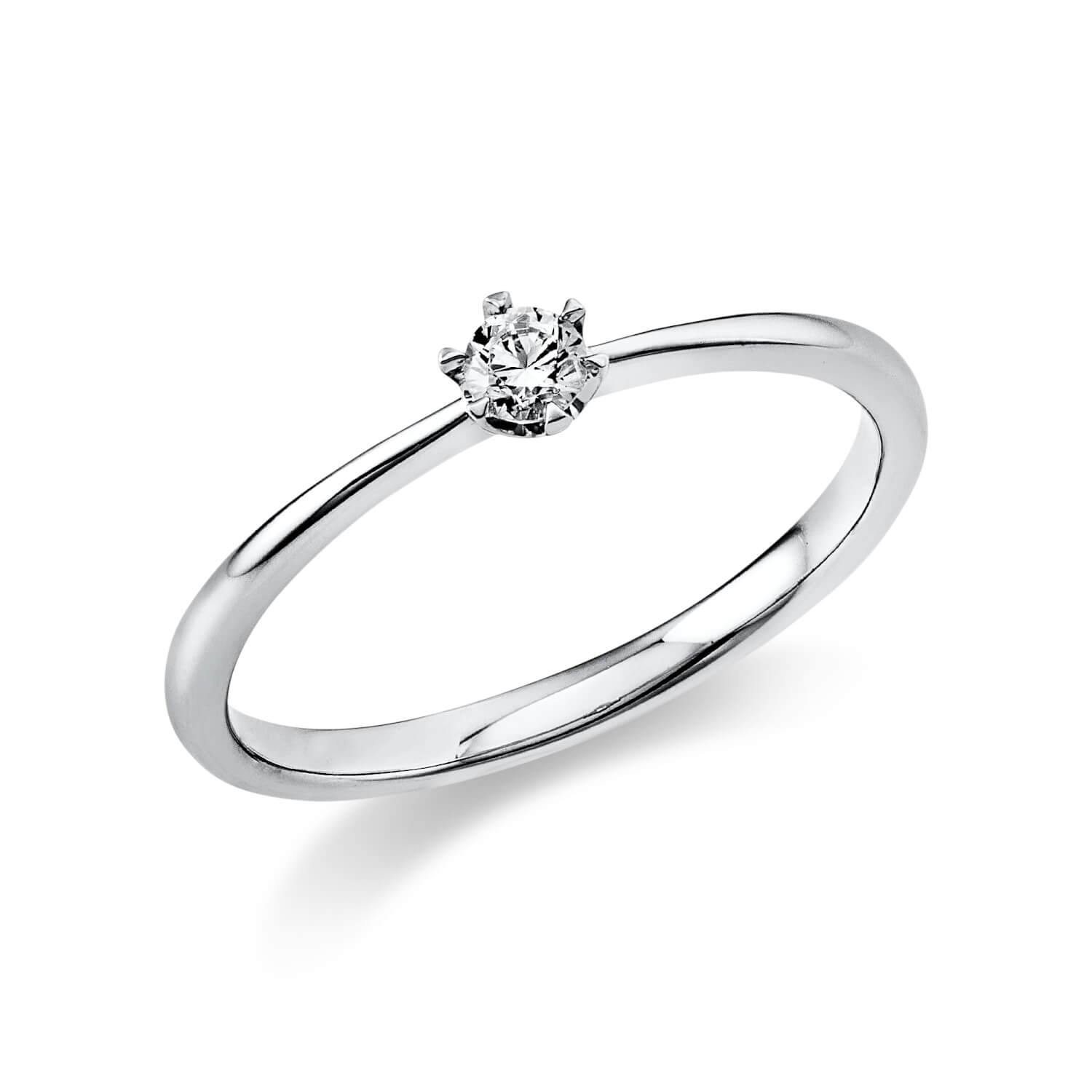 Solitaire Ring aus 750 Gold Weißgold Brillant 0,1ct TW-SI B:1,7mm 6er-Krappe