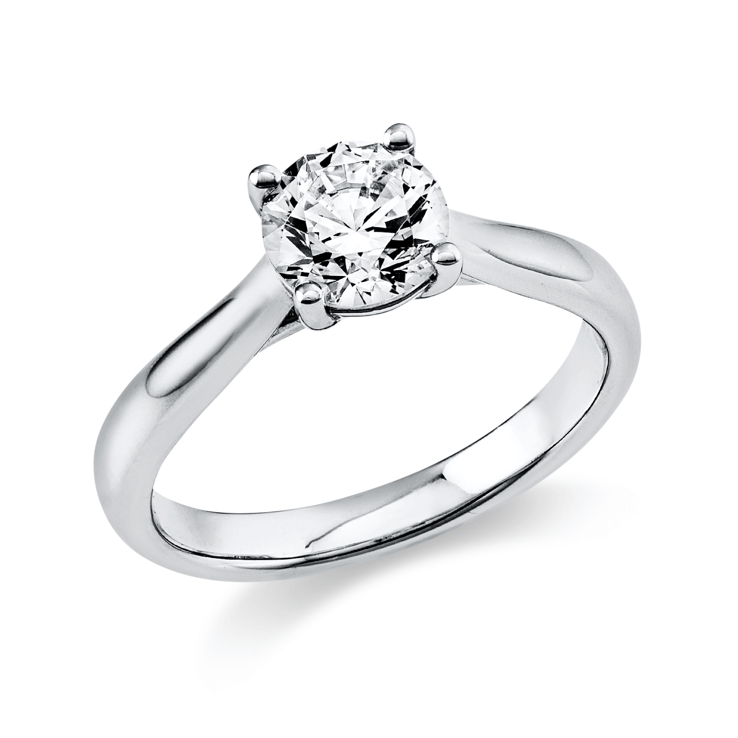 Solitaire Ring aus 750 Gold Weißgold Brillant 1ct TW-SI B:3,2mm 4er-Krappe
