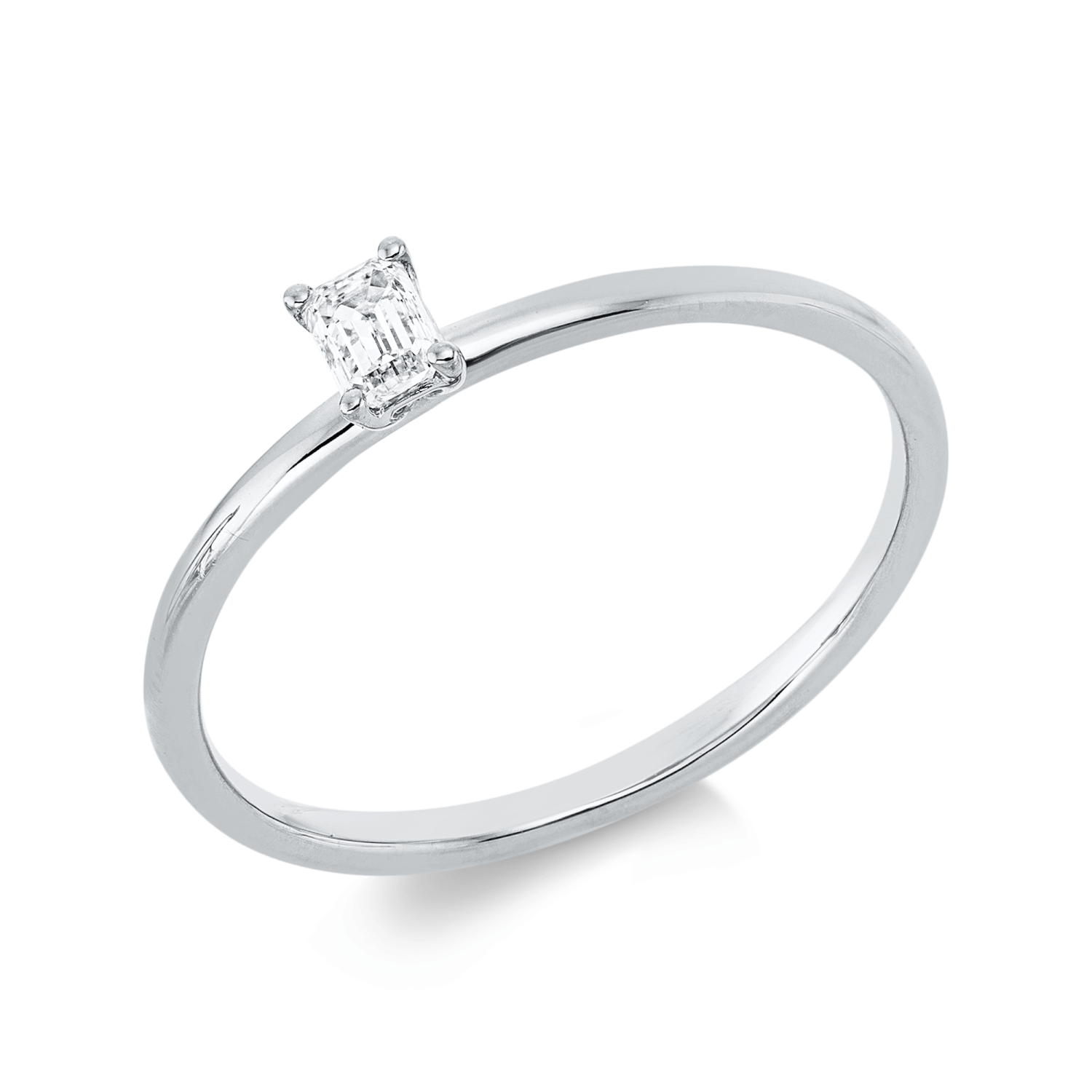 Solitaire Ring aus 750 Weißgold Diamant Smaragd-Schliff 0,15ct TW-SI B:3,7mm