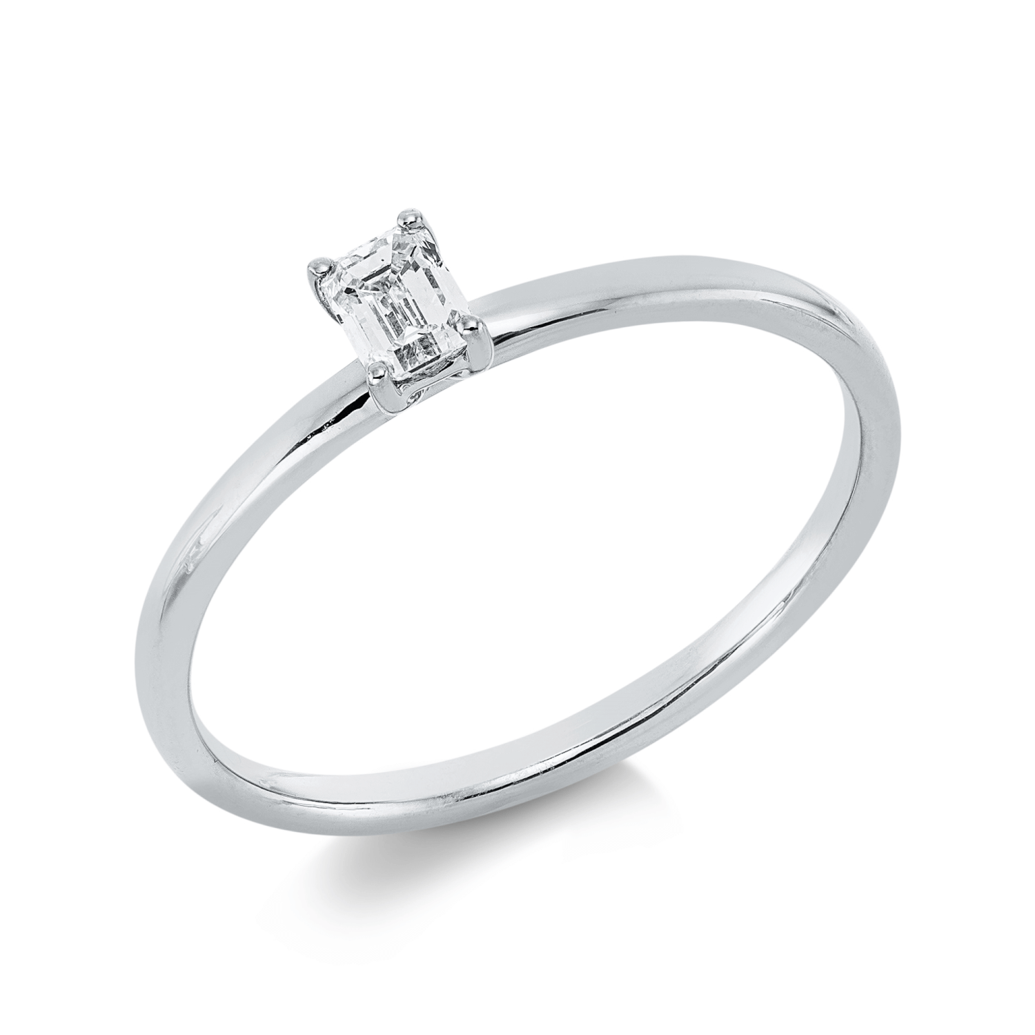 Solitaire Ring aus 750 Weißgold Diamant Smaragd-Schliff 0,21ct TW-SI B:3,9mm
