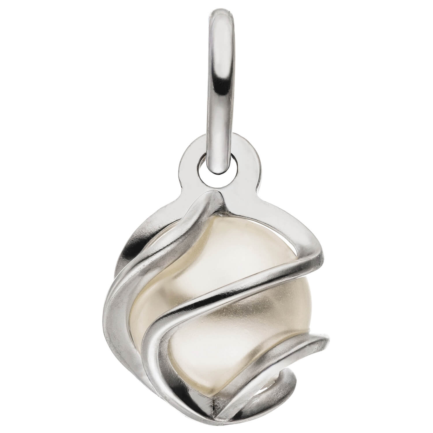 Anhänger aus 925 Sterlingsilber, rhodiniert, mit eriner synthetischen weißen Perle