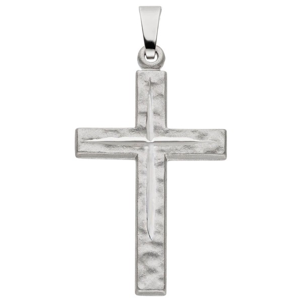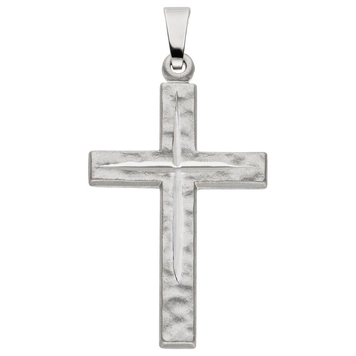 Anhänger 'Kreuz' aus 925 Sterlingsilber, rhodiniert und teilmattiert, mit Struktur, diamantiert