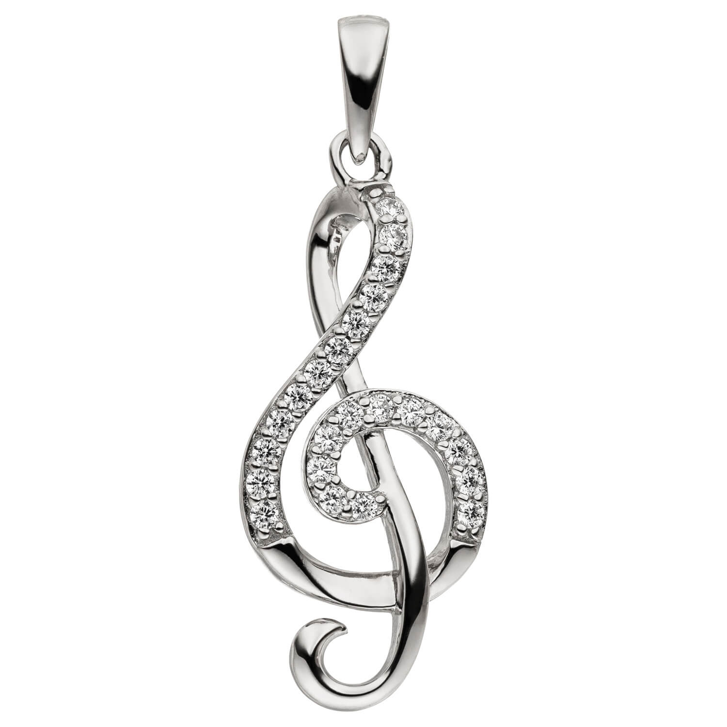 Anhänger 'Notenschlüssel' aus 925 Sterlingsilber, rhodiniert, mit 23 Zirkonia