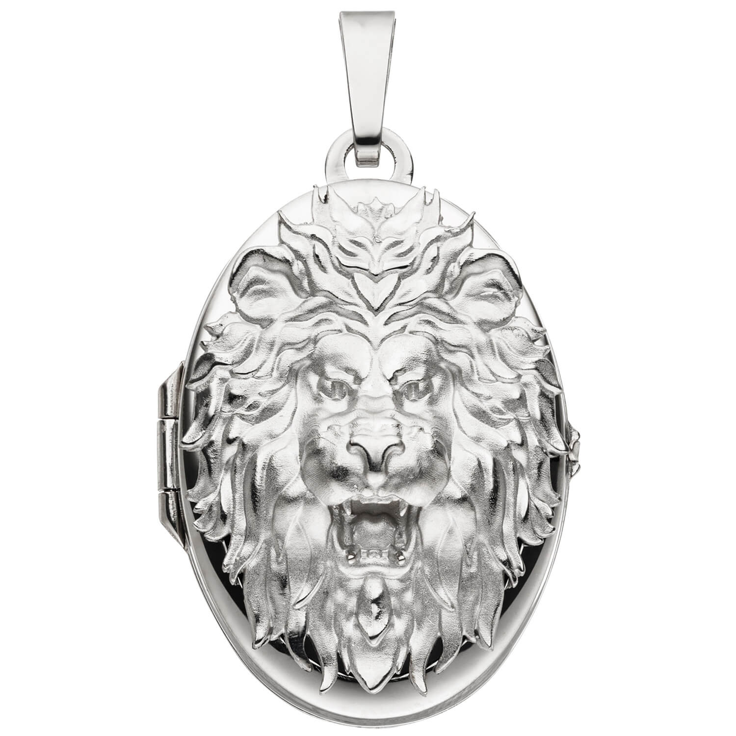 Medaillon Löwe Löwenkopf 925 Silber rhodiniert Anhänger zum Öffnen 28,8x21,4mm