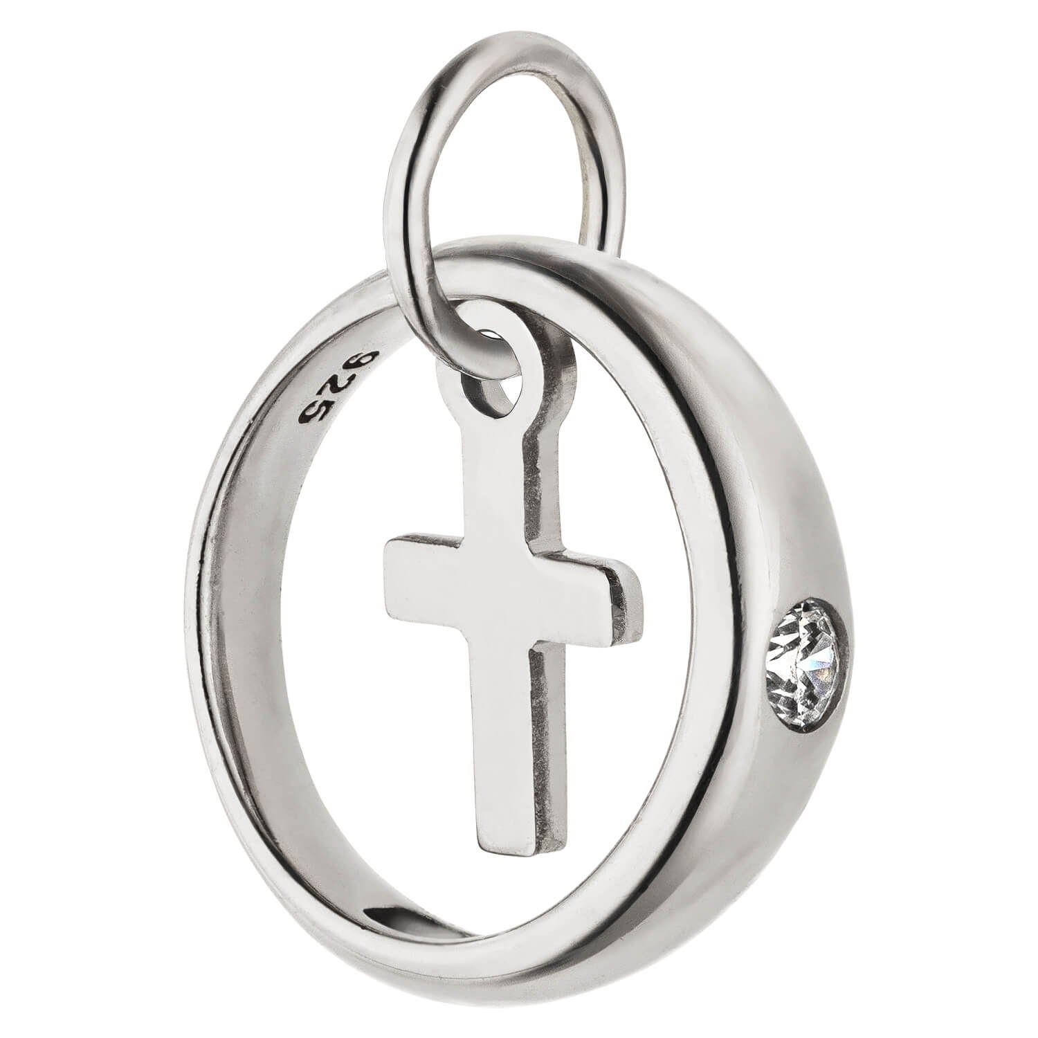 Taufring Anhänger mit Kreuz 925 Silber rhodiniert Zirkonia Ø 11mm Taufschmuck