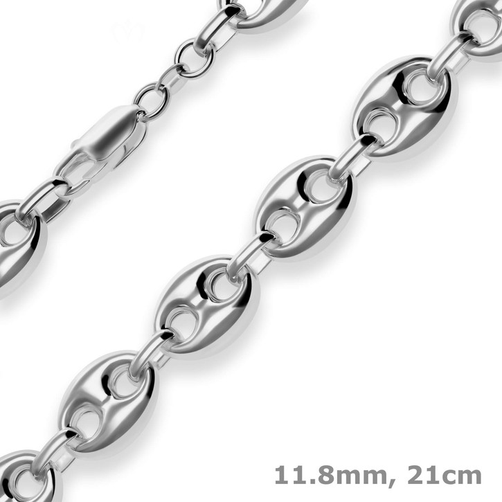 11,8mm Armband Schiffsankerkette Armschmuck aus 925 Silber rhodiniert 21cm