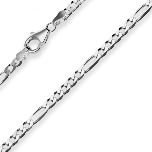 3,4mm Armband Figarokette diamantiert aus 925 Silber rhodiniert