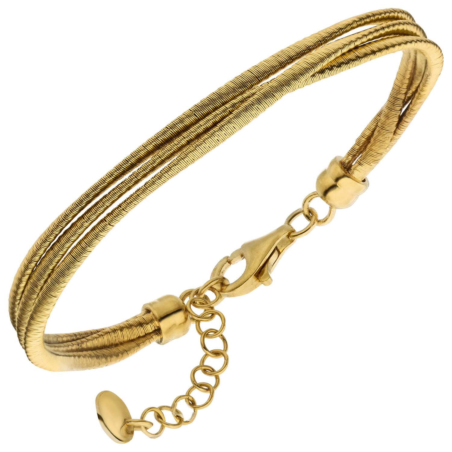 3-reihiges Armband aus 925 Sterlingsilber, vergoldet und teilmattiert, mit Karabinerverschluss