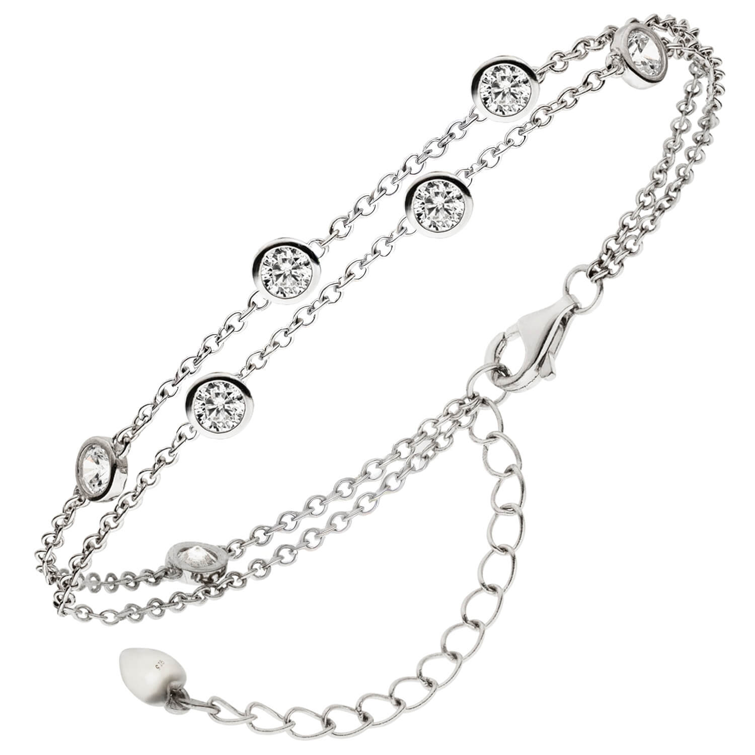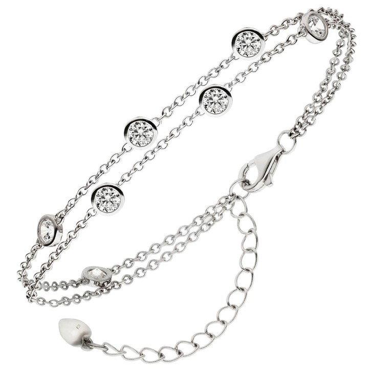 Armband Armkette 2-reihig aus 925 Silber rhodiniert mit 7 Zirkonia 15-19,5cm