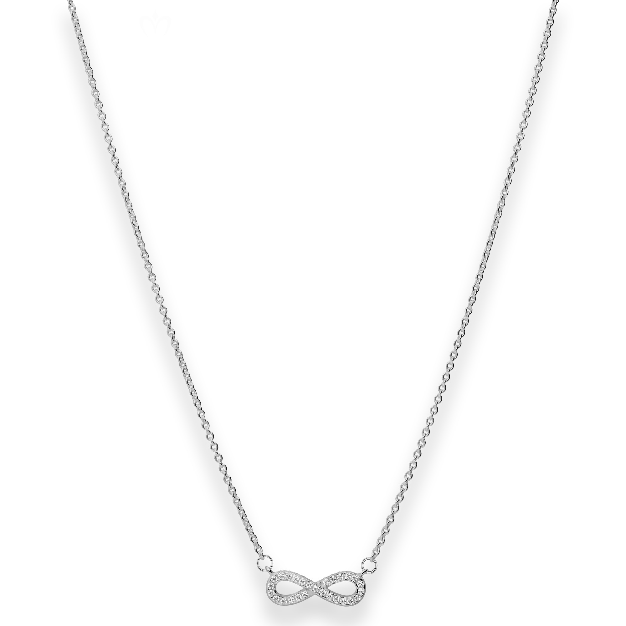 Halskette in massiver Ausführung mit Karabinerverschluss, Anhänger Infinity Unendlichkeit mit weißem Zirkonia ca. 15,7 x 5,7 mm, + Verlängerungskette, Kette mit variablen Länge