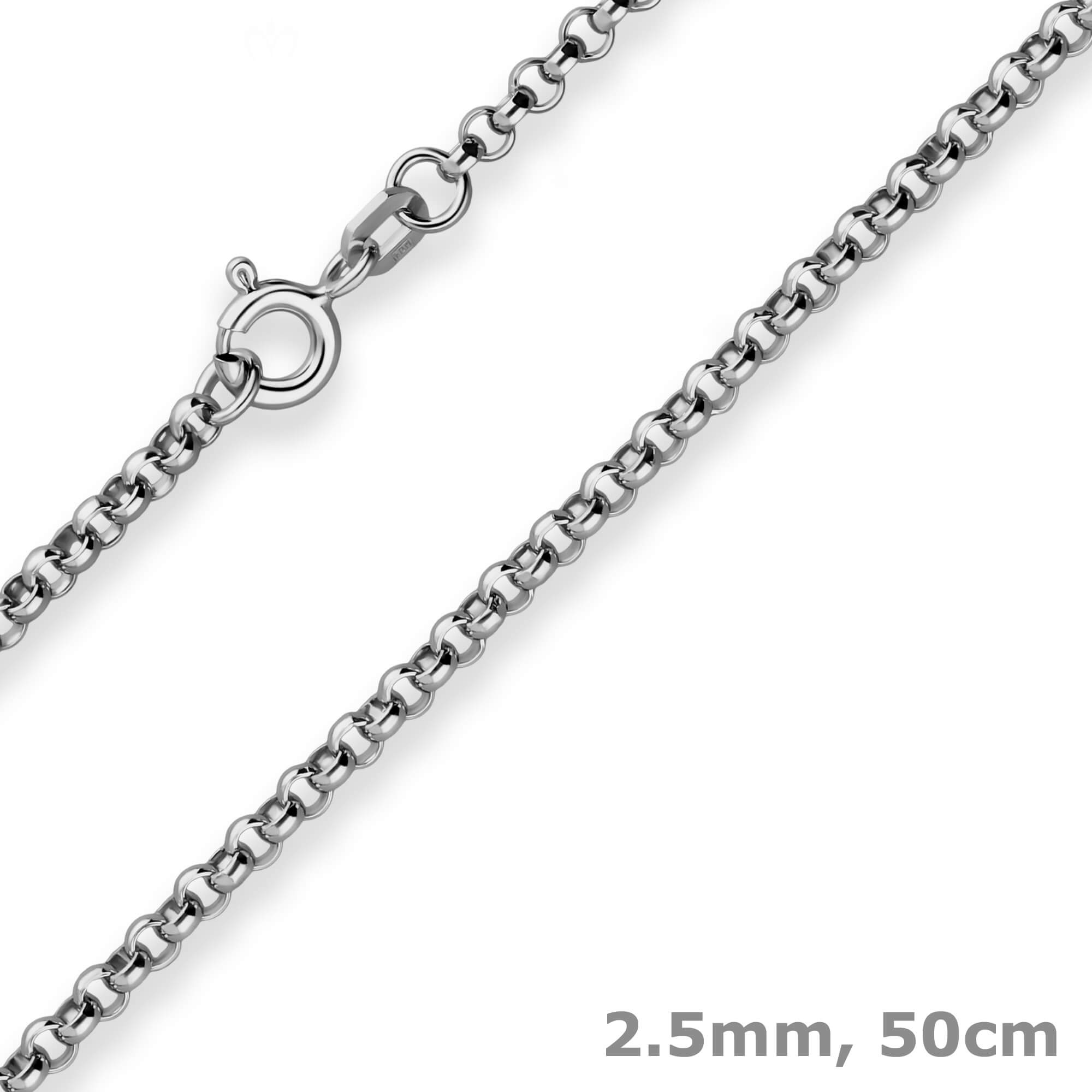 2,5mm Erbskette aus 925 Silber rhodiniert 50cm