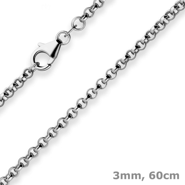 3mm Erbskette aus 925 Silber rhodiniert 60cm