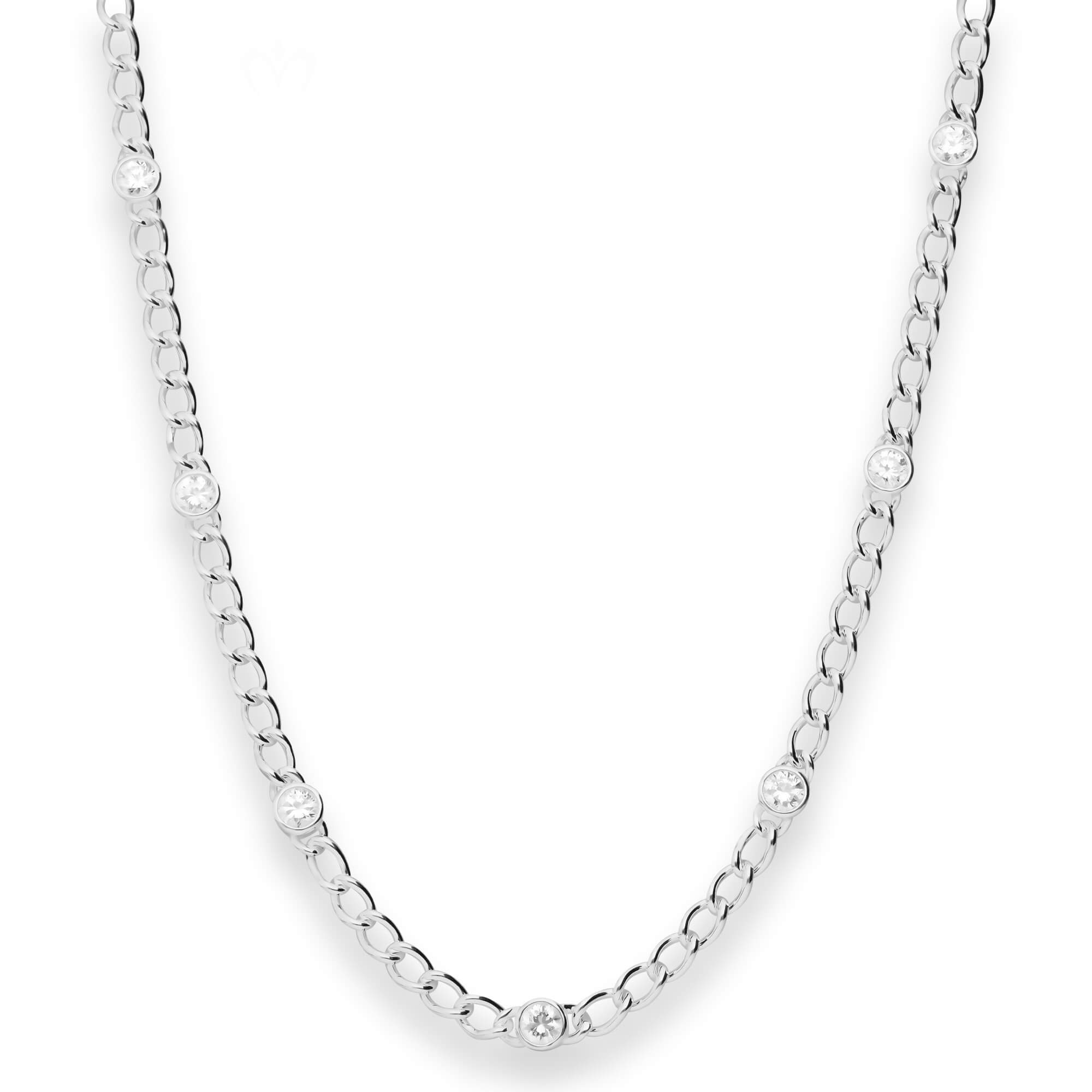 Halskette in massiver Ausführung mit Karabinerverschluss, mit 7 weißen runden Zirkonia ca. 5,2 mm