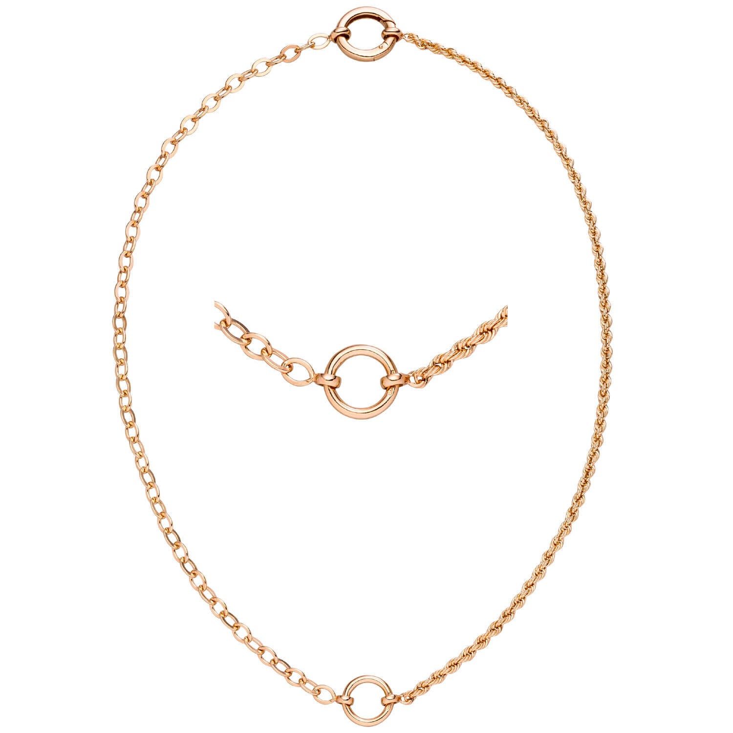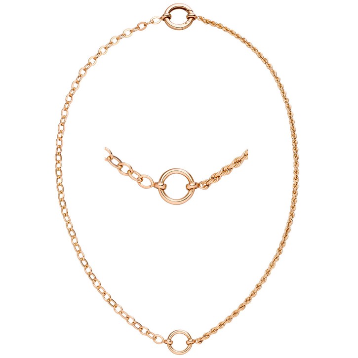 Kordelkette & Weitankerkette aus 925 Silber rotvergoldet 42cm