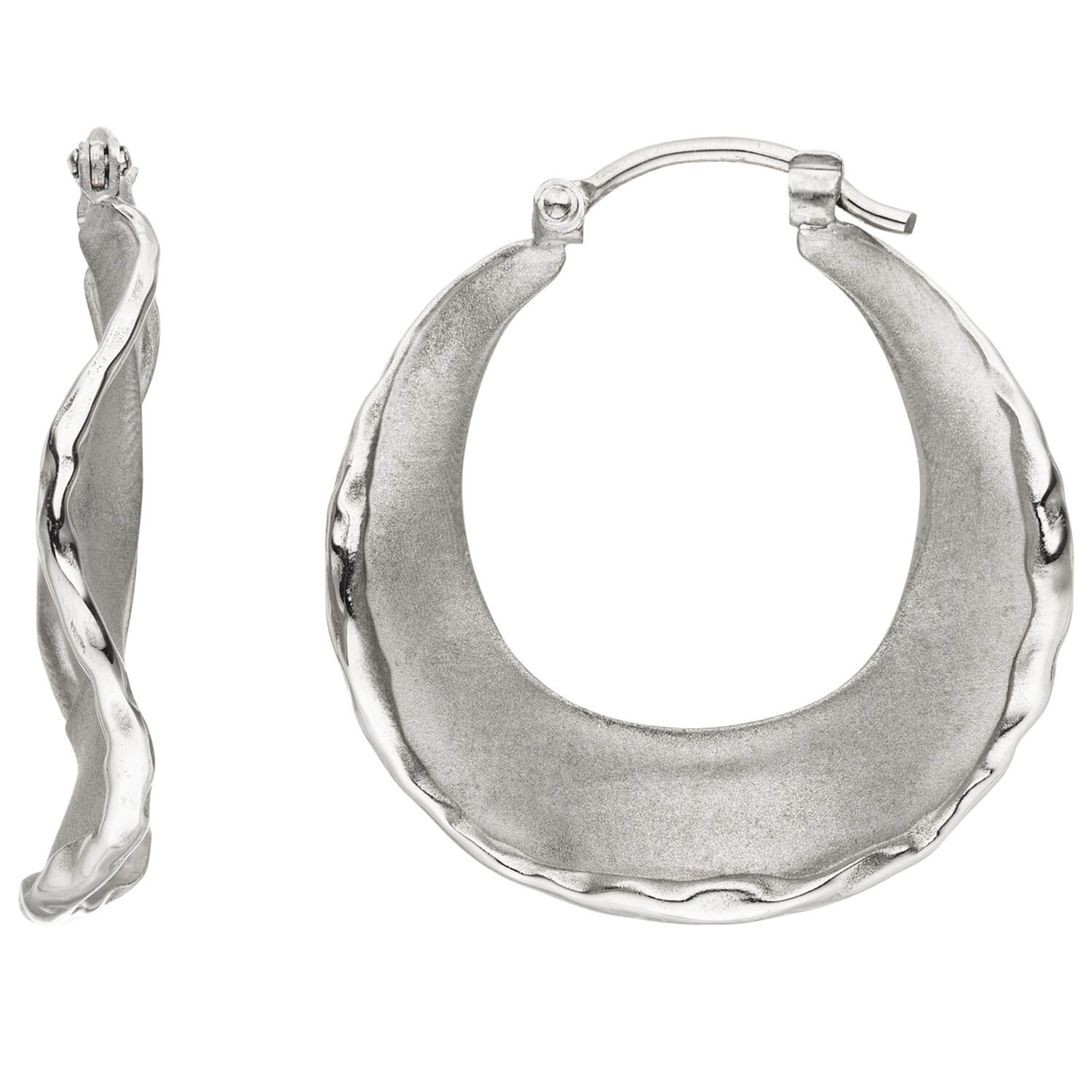 1 Paar Creolen aus 925 Sterlingsilber, rhodiniert und teilmattiert