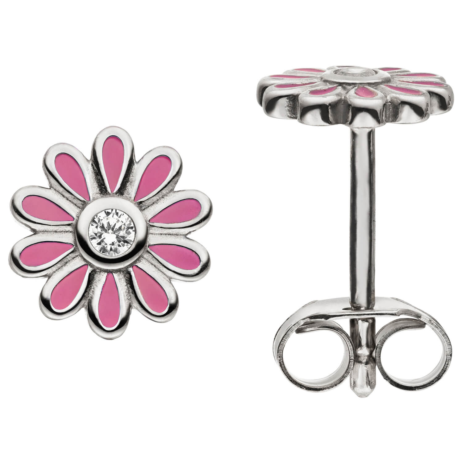 Ohrstecker Blumen rosa aus 925 Silber rhodiniert 2 Zirkonia Ohrringe für Kinder