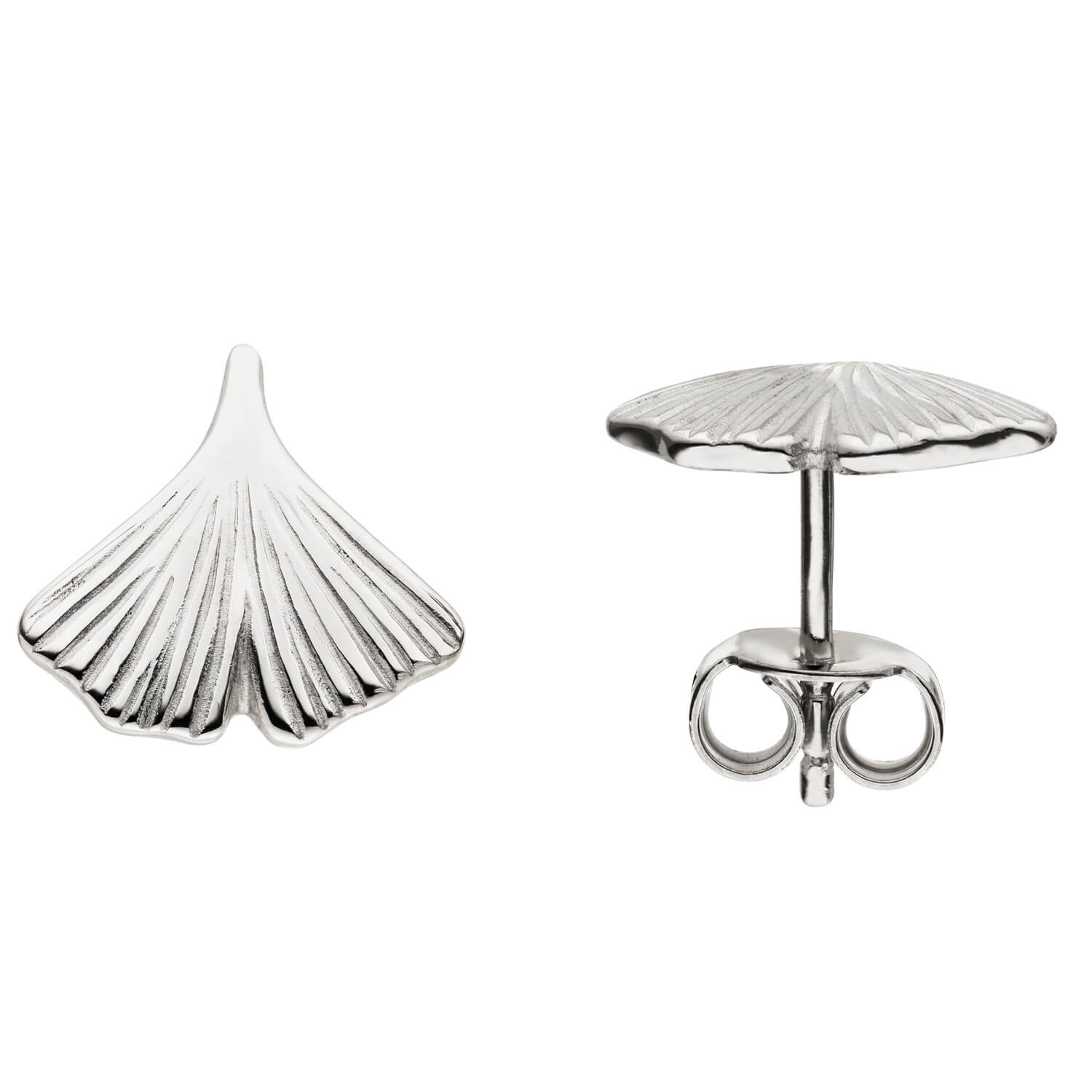 Paar Ohrstecker Ginkgo Ginkgoblätter 925 Silber mattiert Ohrringe 11,9x11,5mm